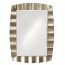 This piece features a rectangular mirror bordered by a rippled wave design created in a wood frame. The piece is then finished in a burnished silver leaf with brass highlights giving the mirror its appealing Contemporary appeal.